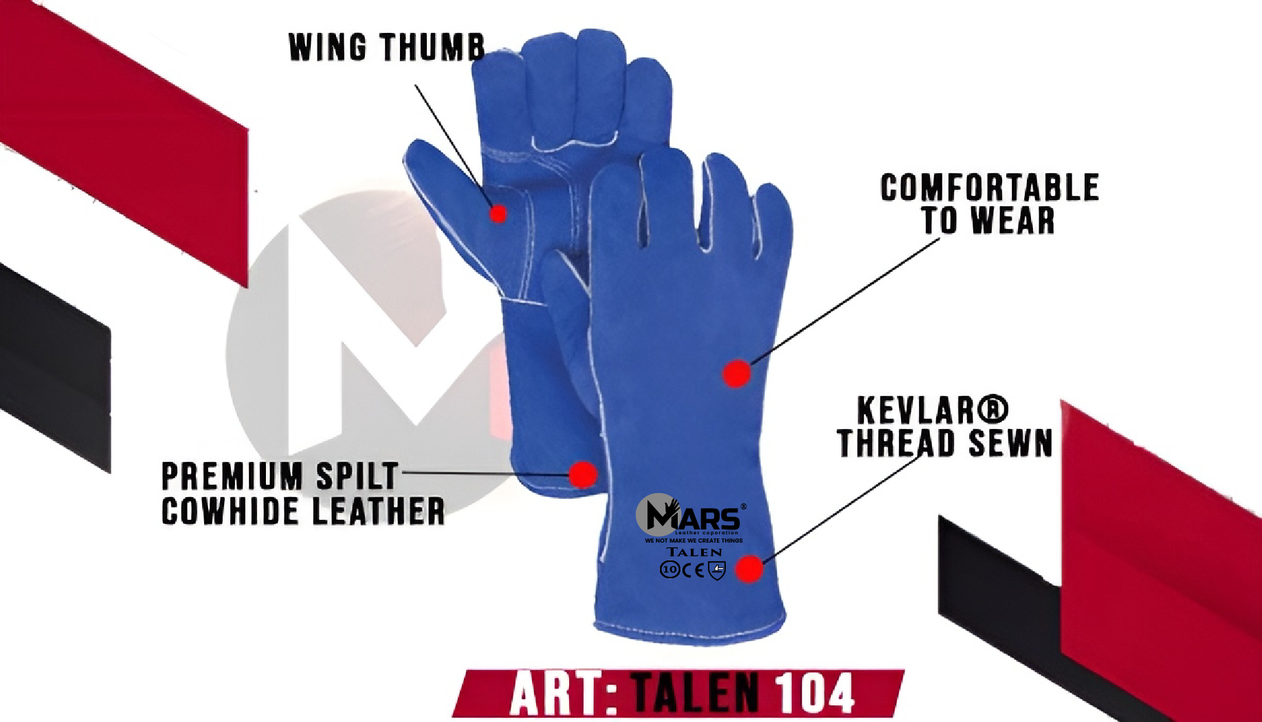 Glove made from premium split cowhide skin,fully leather,wing thumb, kevlar®thread sewn constructed of very soft and specially treated goat skin offers comfort,excellent for use of very soft and touch sensitivity requirements.